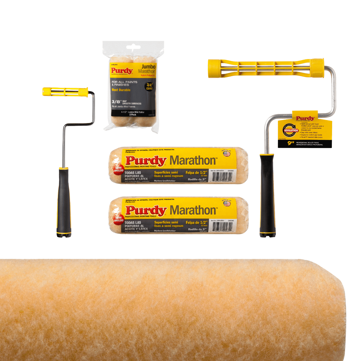 Purdy Marathon MAXI Set kombinira 2 velika Marathon valjka 23 cm i jumbo mini sustav za detaljno bojenje poluhrapavih površina. Izdržljiv, precizan i idealan za zahtjevne premaze.