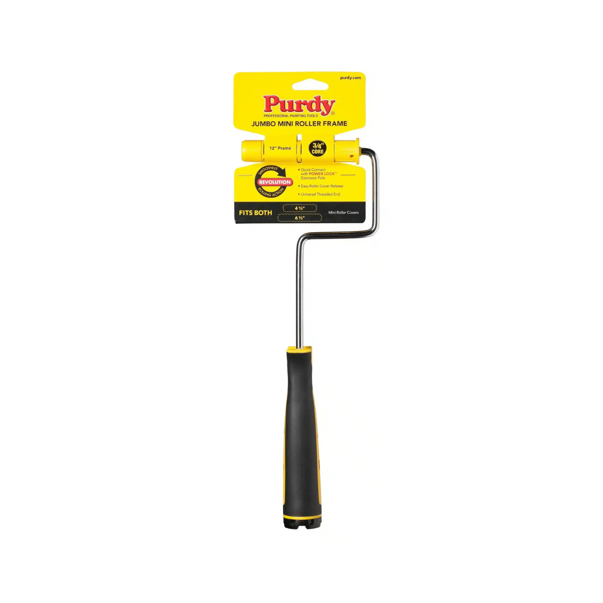 Purdy Revolution™ Jumbo Mini držač za valjke pruža glatko valjanje bez preskakanja, s jednostavnim “tap off” skidanjem valjaka. Kompatibilan sa svim Purdy Jumbo Mini valjcima.